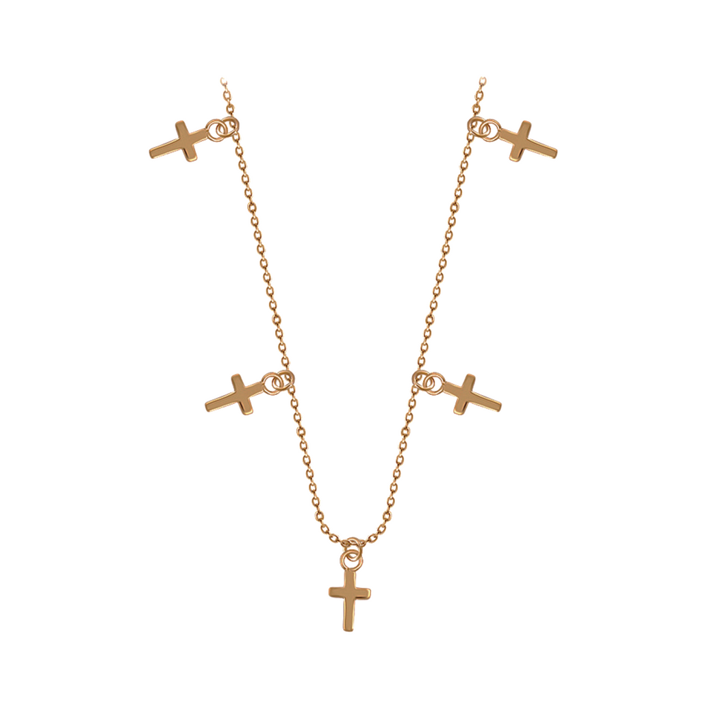 Sterling Silver Rose Gold Plated Petite Cross Charm Necklace